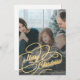 Elegant faux gold script family photo overlay name and text personalised Christmas holiday card.