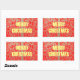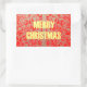 Merry Christmas Golden Red Snow Glitter Hearts Art Rectangular Sticker