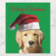 A Cute Golden Retriever wearing a Santa Claus Hat for Christmas