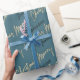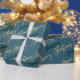 Merry Christmas Golden Script Name Black Teal Blue Wrapping Paper
