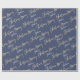 Merry Christmas Golden Script Name Blue Navy Wrapping Paper
