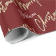 Merry Christmas Golden Script Name Custom Burgundy Wrapping Paper