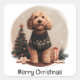 Merry Christmas Goldendoodle Puppy Dogs Square Sticker