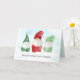 Merry Christmas wishes for a sweet grandson or other child decorated with three whimsical holiday gnomes in winter snow hand painted with watercolor. On the inside is another little gnome and watercolor wash with text you can edit to fit your needs. In Scandanavian countries these are Nisse or Tomte referring to household spirits associated with good fortune and the farmstead. In general gnomes symbolise good luck, prosperity, and protection.