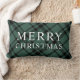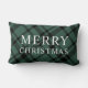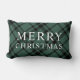 Merry Christmas Green and Black Tartan Plaid Lumbar Cushion
