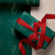 Chic calligraphy script Merry Christmas elegant green gold seasonal gifts wrapping paper.