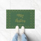 Merry Christmas Green and Gold Script Name Doormat