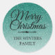 A modern, faux green glitter ombre Merry Christmas sticker or envelope seal you can personalise with your family name or names. The emerald glitter ombre pattern fades onto a white background. The text "Merry Christmas" in black is set in modern script. Perfect Christmas envelope seal with modern pattern, sparkle, luxury and glam.