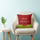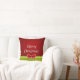 Festive pillow for christmas with red & green striped pattern and "Merry Christmas!" typography in the middle.