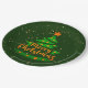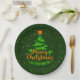 Merry Christmas Green Tree Gold Orange Stars 9" Paper Plate