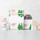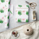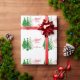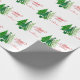 This personalised Christmas Greetings wrapping paper has a grouping of three potted green simulated foil Christmas trees with gold edges on them and red decorative text that says "Merry Christmas" on it, along with red customisable text that says "From the Henderson Family" on it. Change the text to your name or put whatever you like on it, or delete it if you don't want any text.
