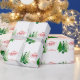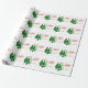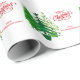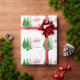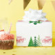 This personalised Christmas Greetings wrapping paper has a grouping of three potted green simulated foil Christmas trees with gold edges on them and red decorative text that says "Merry Christmas" on it, along with red customisable text that says "From the Henderson Family" on it. Change the text to your name or put whatever you like on it, or delete it if you don't want any text.