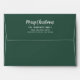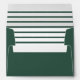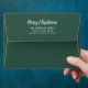 Hunter / pine green holiday envelopes feature Merry Christmas in modern white script writing with custom return address on the back flap in white. Includes a coordinating white and red horizontal stripes pattern printed on the inside of the envelope.