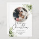 Merry Christmas Greenery Gold Ring Photo Holiday Card