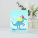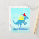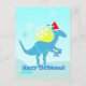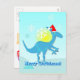Merry Christmas Greeting Dinosaur Postcard. A cute little blue cartoon Parasaurolophus dinosaur with a red Santa hat in a winter snow landscape with snow flakes falling from the sky postcard. This "Merry Christmas!" cartoon dinosaur postcard is fully customisable! Change the text "Merry Christmas!" and add your images & texts! A cute Christmas greetings dinosaurs card!