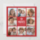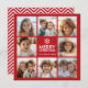 Merry Christmas Greeting with 8 photo collage RED Holiday Card