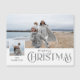 Fun Merry Christmas silver text graphic in a custom font with editable text field, small square photo insert template and large background photo template. All graphic elements are customisable.