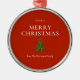 Merry Christmas greeting with tree on red custom Metal Ornament