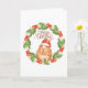 This cute Christmas card features a watercolor guinea pig sitting inside of a wreath wearing a Santa hat, with the words "Merry Christmas" above it's head. The inside greeting is a template, so it can be removed and replaced with your own greeting!