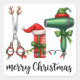 Celebrate the holidays in style with this charming watercolor illustration featuring festive hairdressing tools — reindeer-antler scissors, a wrapped gift with a Santa hat, and a green hair dryer with an elf hat, all connected by colorful Christmas lights. Perfect for hairstylists, barbers, salon owners, and cosmetologists. A great Christmas gift idea for clients, coworkers, or your favorite hairdresser. Ideal for festive salon décor, holiday apparel, cards, and personalized gifts.