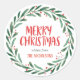 Merry Christmas Handwritten Script | Wreath Classic Round Sticker