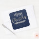 Merry Christmas Happy New Year Blue Silver Grey Square Sticker