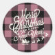 Merry Christmas Happy New Year Purple Check Classic Round Sticker