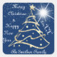 Merry Christmas & Happy New Year Tree Navy Gold Square Sticker