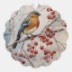 A winter Robin on a branch with red berries, Christmas ornament, with a red text on the back