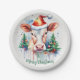 Christmas plates featuring a cute watercolor cow with a Christmas hat. Customisable.