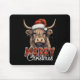 Merry Christmas Highland Cow Western Santa Hat Xma Mouse Pad