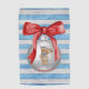 Celebrate the holidays with this gorgeous coastal-themed Christmas golf towel. The design is a white Christmas ornament ball with a festive red bow and the cutest little nautical bear complete with sailor hat. The text reads, "Merry Christmas Hilton Head Island." The background is a coastal blue and light grey stripe pattern. (Matching golf balls and markers also available.) The golf towel is a great gift for Christmas party gift exchange, business or club holiday giveaways, or any Hilton Head visitor or resident golfer! Please browse our complete collection of coastal, Lowcountry, and Hilton Head themed holiday cards and gifts. Special design requests accepted. (Creative design by Glenda Motsavage.)