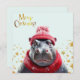 Merry Christmas Hippo Santa hat and scarf Holiday Card