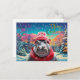 Merry Christmas Hippo Santa hat and scarf Holiday Postcard