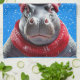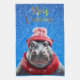 Merry Christmas Hippo Santa hat and scarf Tea Towel