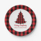 Merry Christmas Holiday Buffalo Check Pattern Paper Plate