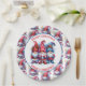 Cute watercolor whimsical winter gnomes in red and blue Christmas party paper plates.
