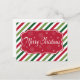 Merry Christmas illustration with text and snowflakes design on red, white and green striped background