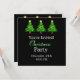 Christmas Party invitation featuring christmas tree and customisable front and back side set in black. Get in the spirit of the season and send your Christmas invitations our early!