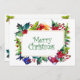 This holidays design features an elegant watercolor frame of Christmas trees, stockings, candy canes, holly, decorations and more with the text "Merry Christmas" in elegant green script. On the reverse you can personalise to whom you are sending the card and the greeting "Warmest greetings of this festive season and best wishes for happiness this New Year" with your details below. Decorated with watercolor holiday elements. Personalise by editing the text in the text boxes provided.