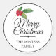 A simple and modern gold Merry Christmas gift sticker, envelope or package seal you can personalise with your family name or names. The text "Merry Christmas" in black is set in chic handwritten script calligraphy on a white background with a stylish touch of festive watercolor holly and berries. Exclusively designed for you by Happy Dolphin Studio. If you need any help or matching products, please contact us through our store chat.