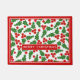 Merry Christmas holly berry pattern red and green door mat with red border and the text "Merry Christmas".