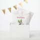 Whimsical watercolor illustration of adorable hedgehog with branch of holly and customisable "Merry Christmas" text