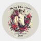 Bring rustic charm to your holiday cards and gifts with this personalised horse Christmas sticker! Featuring a white horse framed by a brown and red floral wreath, Perfect for horse lovers, farming families, and anyone who loves rustic holiday style—comes with a matching card that you can find in our store collection.