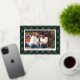 This foil holiday card features a cozy hunter green and black buffalo plaid background with a single photo framed in a shimmering gold foil border. “Merry Christmas” and a small foil heart pair with your family name and year for a clean, classic look. The coordinating back includes a photo strip collage and a handwritten style holiday message for extra warmth.