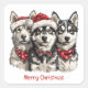 Merry Christmas Husky Dogs Square Sticker
