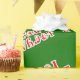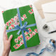 Green Wrapping paper with the Cherokee words for "Merry Christmas" in red Sequoyan characters with white border.