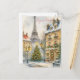 Merry Christmas in Paris Holiday Postcard – Watercolor Eiffel Tower – French Xmas Greeting Card – Parisian Winter Scene Card