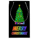 This fun Christmas gift bag design features the message "MERRY CHRISTMAS!" having letters with a colourful rainbow spectrum gradient pattern. It also features a vibrant, artistic, decorated Christmas tree and wrapped presents representation.