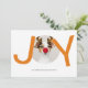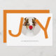 A colourful Merry Christmas Joy Holiday Photo card from Ricaso - designed with a bold orange chunky typography text to the front and a photo placement template - this simple modern bright orange design is sure to be a hit with family and friends .. easy to add your own text and photo - Send your greetings in style this holiday with a personalised card - also available in different colours in store